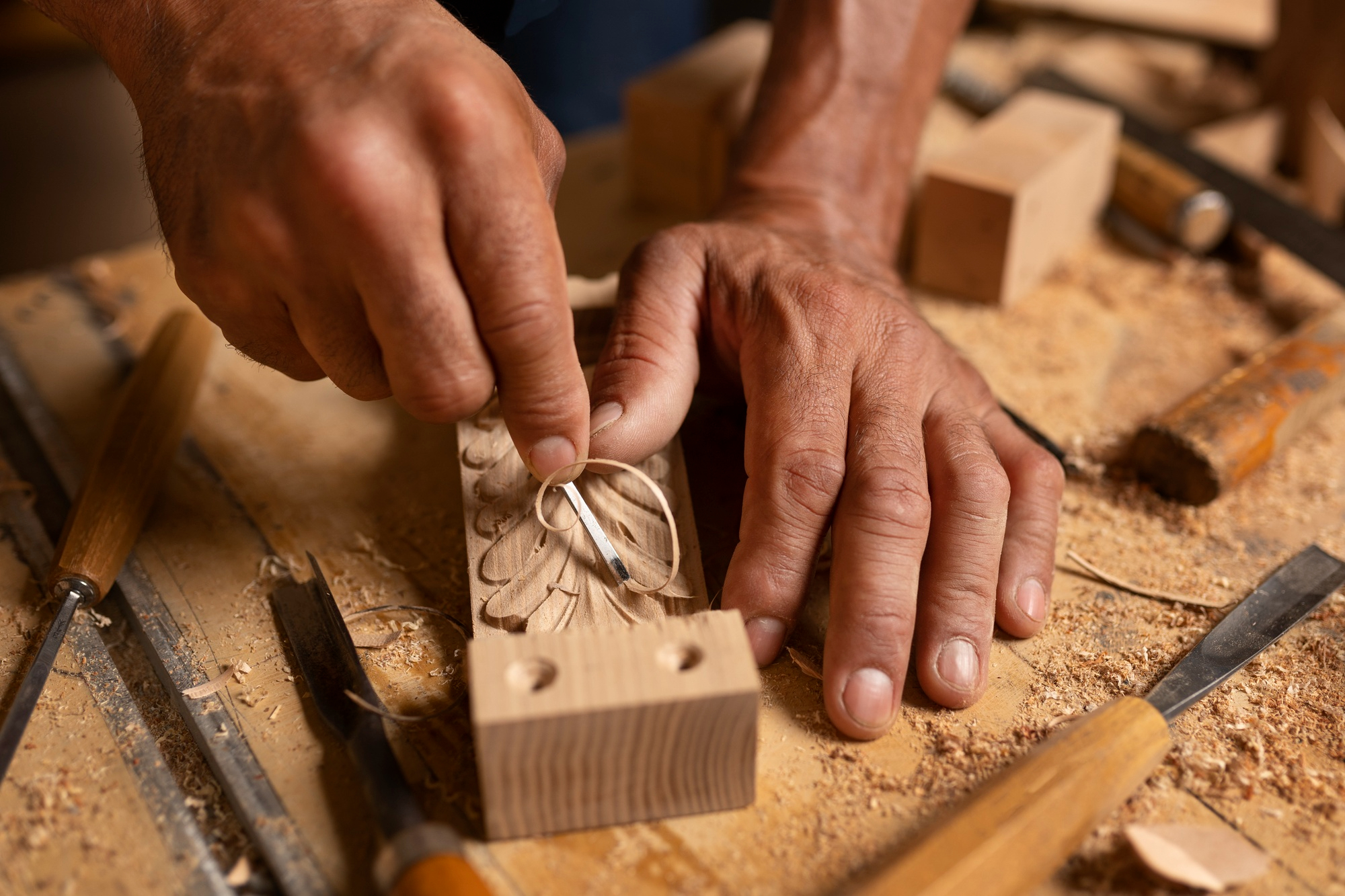 I Kulturmaskinen finder du åbne kreative værksteder, hvor du kan arbejde med materialer, værktøj og hænderne.